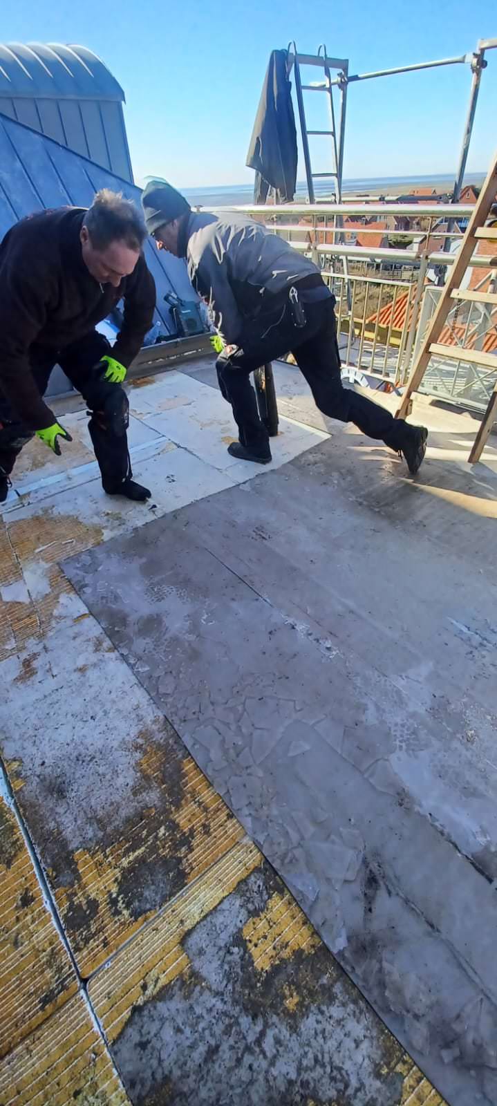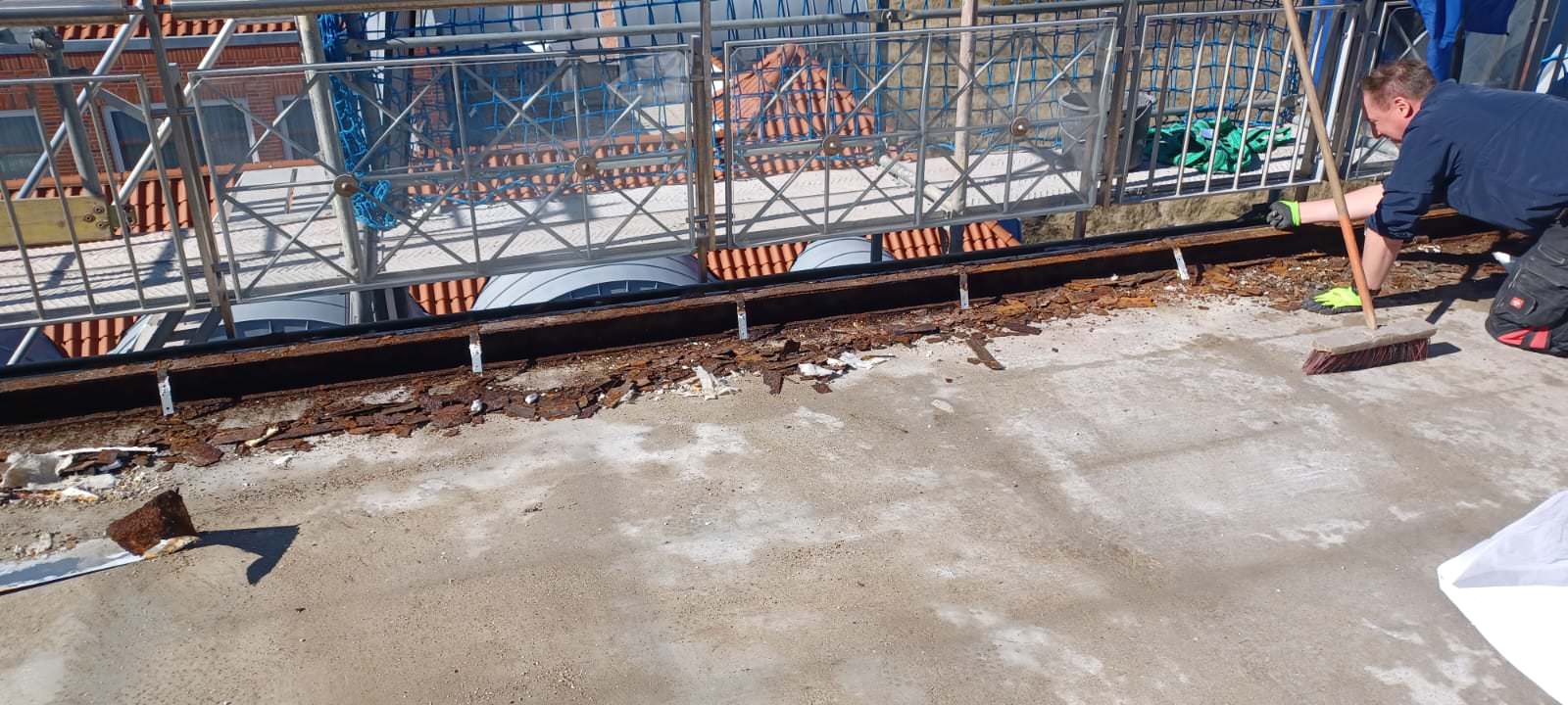 • Vollständiger Rückbau des alten Fliesenbelags: Wir entfernen sorgfältig den bestehenden Fliesenbelag sowie alle darunterliegenden Schichten bis auf den Rohbeton. Dies schafft eine saubere und stabile Basis für den Neuaufbau.
