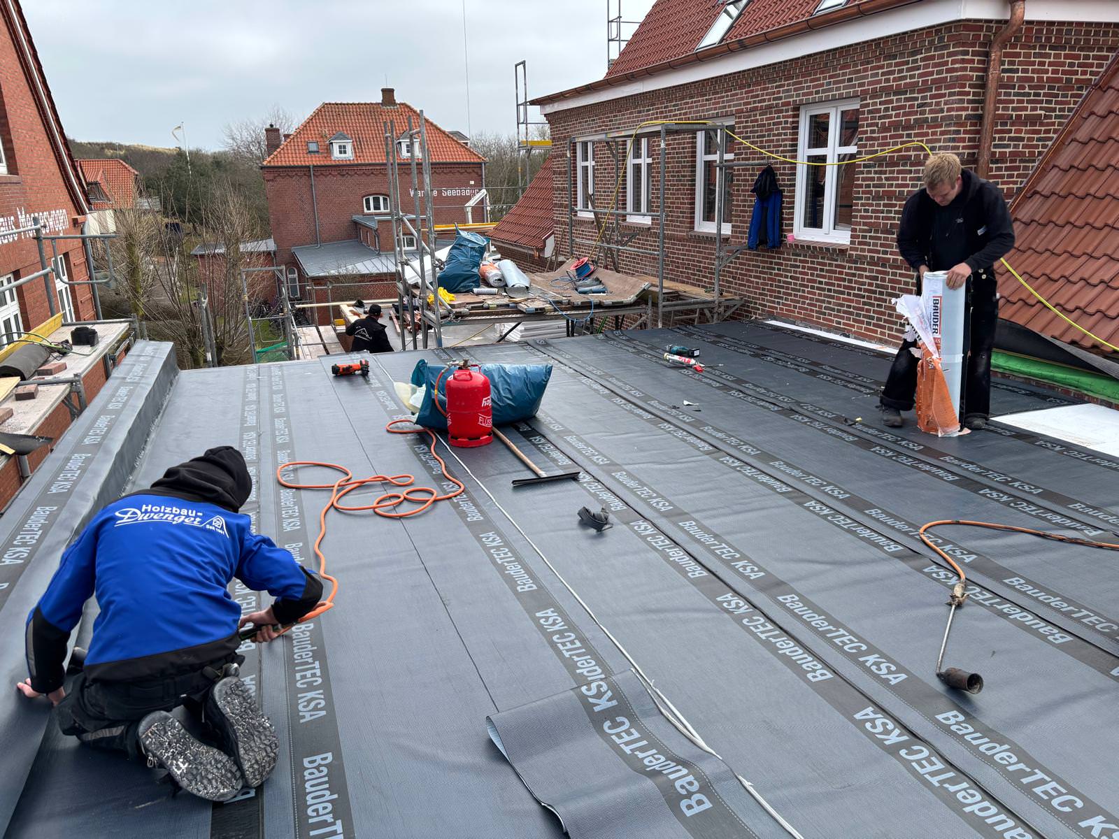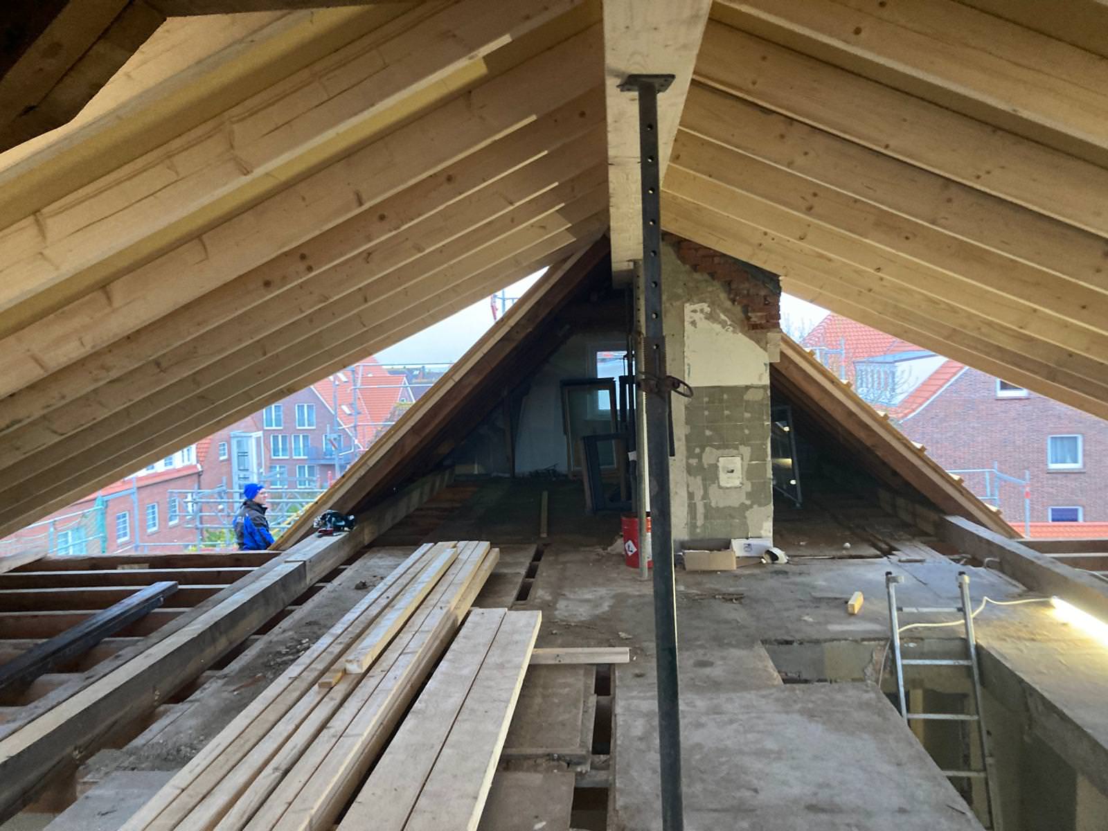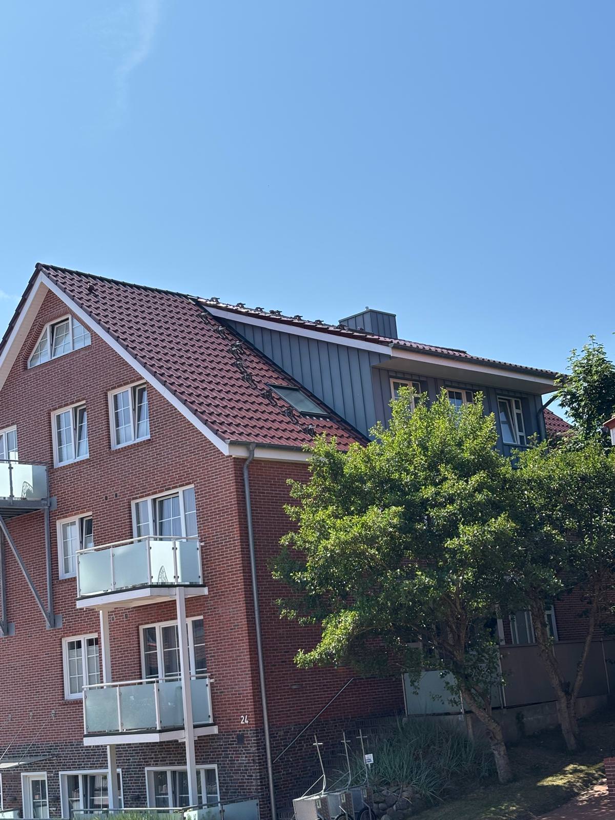 Mit unserer Expertise im Zimmerer- und Dachdeckerhandwerk sowie im Bereich der Klempnerarbeiten gewährleisten wir eine fachgerechte und langlebige Ausführung. Wir kümmern uns um alle Details – von der Planung über die Materialauswahl bis hin zur präzisen Umsetzung. Auch die Verarbeitung historischer Dachziegel für denkmalgeschützte oder charakteristische Inselbauten gehört zu unserem Spektrum.